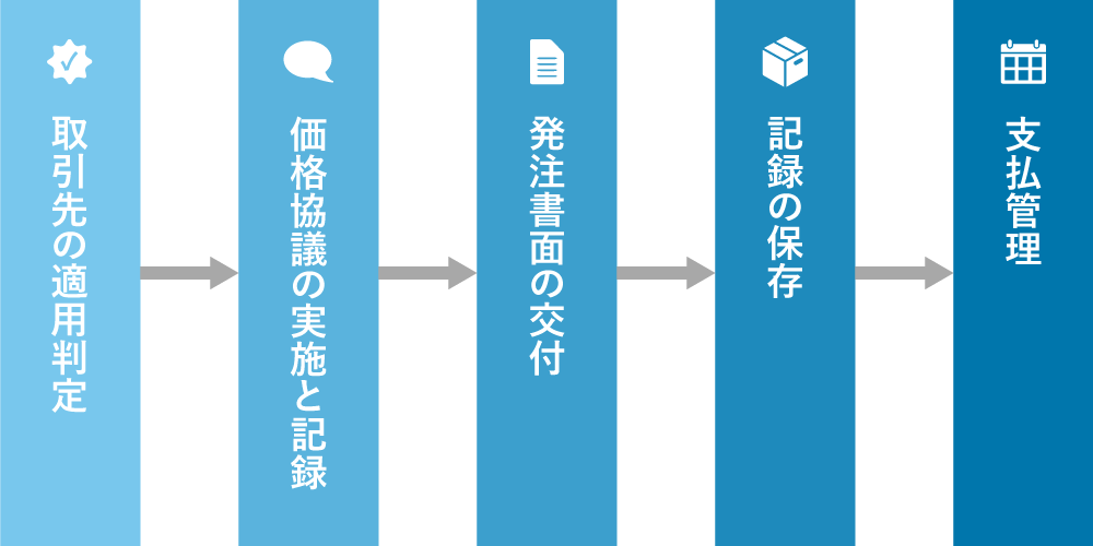 取適法で義務付けられた書面交付、記録作成・保存、支払期日管理等をシステム化します。