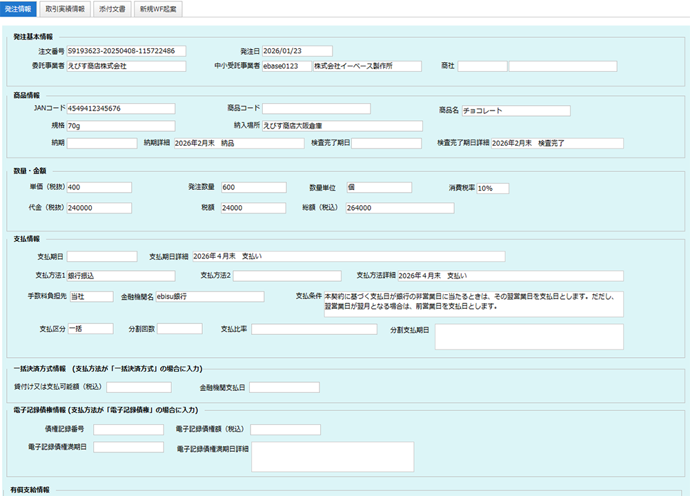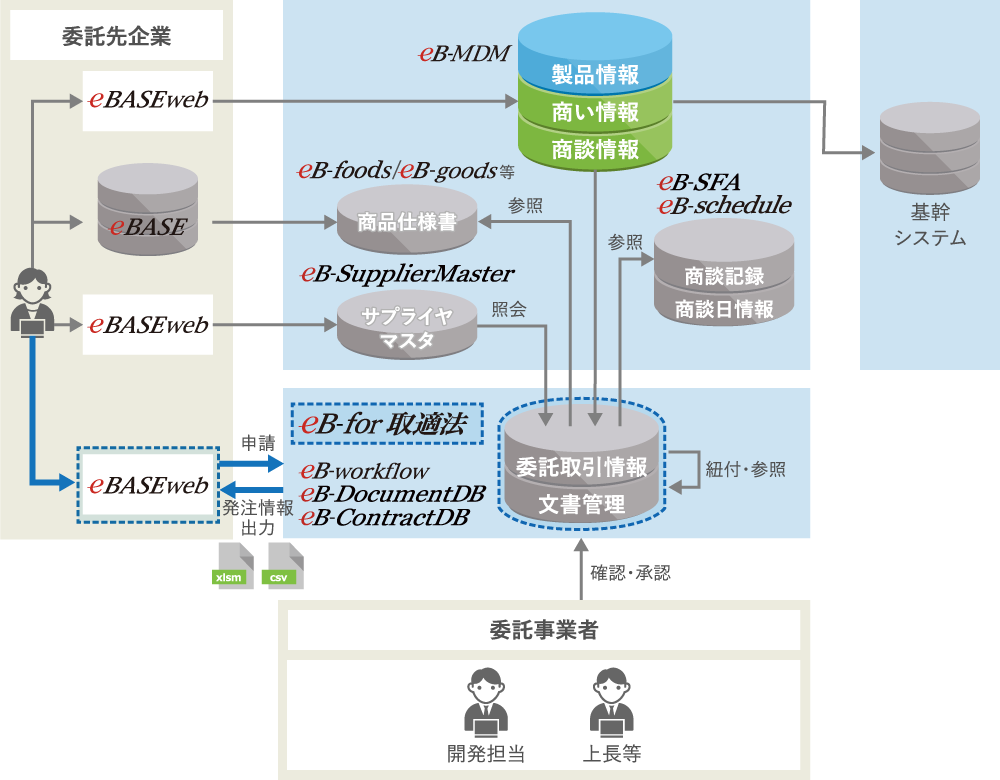 こうした法改正への対応を支援するため、eBASE社は製造委託取引管理システム「eB-for取適法」を開発しました。
