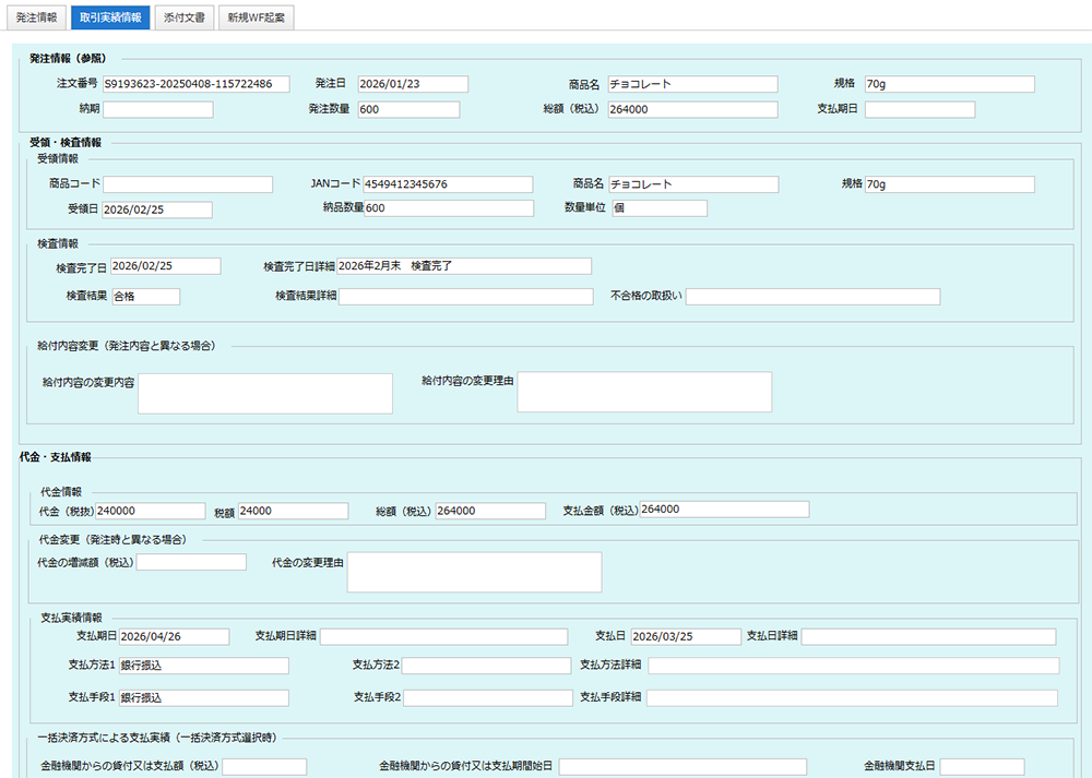 商談段階から発注、記録保存、支払管理までを一貫してシステム管理します。